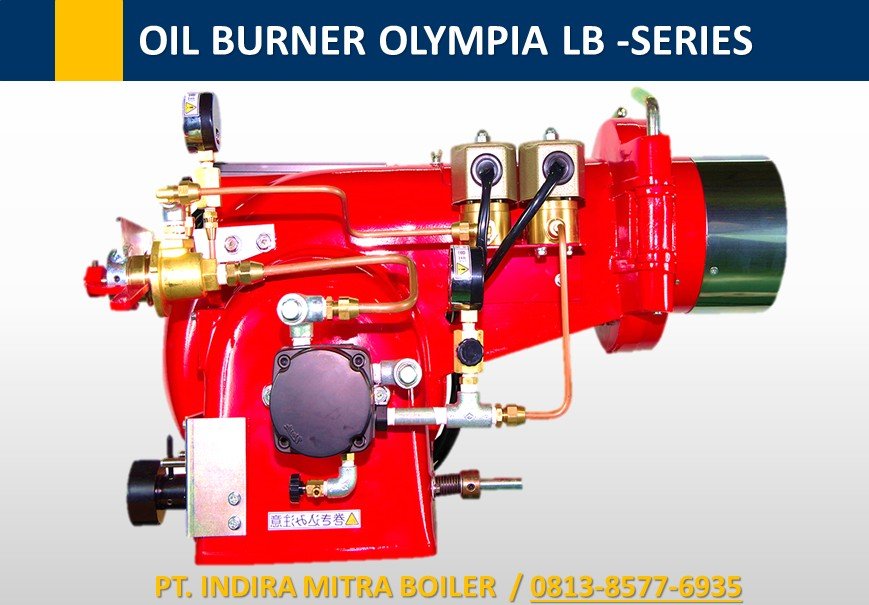 Burner Olympia seri LB 20 hingga LB 81 W adalah produk keluaran jepang yang berfungsi sebagai alat penghasil panas pembakaran dari pengabutan udara dan bahan bakar Heavy Oil atau minyak ringan/berat sejenisnya seperti Minyak RCO, MFO, IDO, MDO dan solar Industri. Burner ini merupakan Type kecil dan sedang untuk seri LB olympia yang memiliki matrial full besi cor dan komponen besi hampir semua kontruksi tidak menggunakan matrial platsik sehingga burner ini cocok untuk di oprasikan pada kondisi area panas dan tekanan .