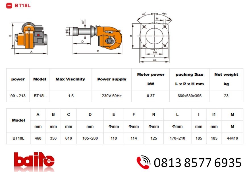 Sepesifikasi Burner Baite BT18 L