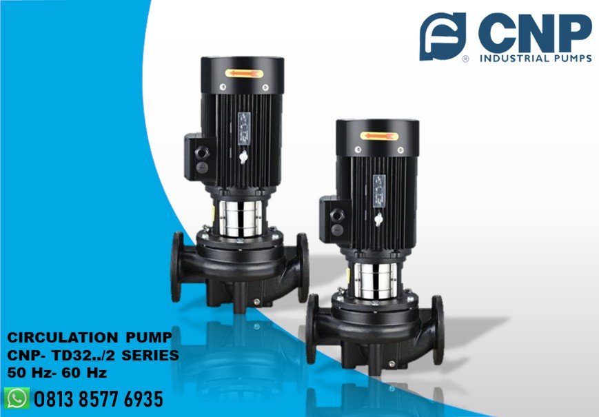 Pompa CNP TD32.. /2 merupakan pompa sentrifugal model vertikal satu tahap yang berada dalam garis. Pompa ini dilengkapi dengan seal mekanis, motor listrik tiga fase beroperasi pada 50-60 Hz, koneksi flange standar PN16, serta desain yang kokoh yang menggunakan bahan-bahan seperti body pompa dari Besi Cor HT200 dan impeller dari Besi Cor/SS. Hal ini memungkinkan pompa ini berfungsi dengan baik pada air dingin dengan suhu -15 derajat hingga air panas pada suhu 110 derajat.