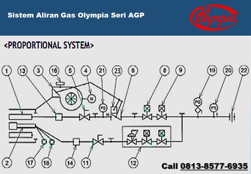 Pembakaran Olympia Seri AGP pembakaran dengan propotional sesuai kebutuhan, model ini dapat bekerja pada bahan bakar Gas LPG, CNG, PGN dengan sensor api Ultra vision yang memiliki kapasitas data teknis sebagi berikut:
