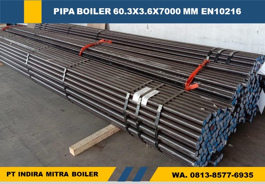 Pipa boiler yang memenuhi standar Eropa EN10216 dengan ukuran luar 60.3mm X 3.6mm X 7000mm menetapkan syarat teknis untuk pengiriman dalam dua jenis pengujian bagi pipa tanpa sambungan yang memiliki bentuk bulat, dengan karakteristik suhu tinggi yang telah ditetapkan, terbuat dari baja paduan serta baja yang tidak paduan. Bagian dari EN 10216 ini juga berlaku untuk pipa dengan bentuk non-bulat; perubahan yang diperlukan harus mendapat persetujuan pada saat permintaan informasi dan pemesanan.