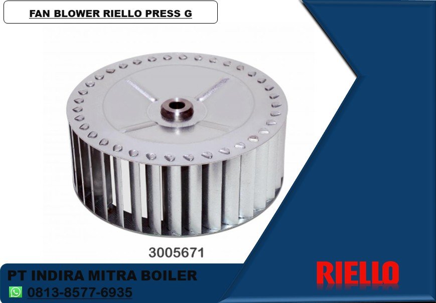 Fan blower pada burner Riello press Gw berfungsi utama sebagai pemasok udara primer yang stabil dan bertekanan tinggi ke dalam ruang pembakaran. Komponen ini krusial untuk mencampur udara segar dengan bahan bakar guna menghasilkan pembakaran yang efisien, sempurna, dan berkesinambungan, sekaligus mendorong gas sisa pembakaran keluar.
