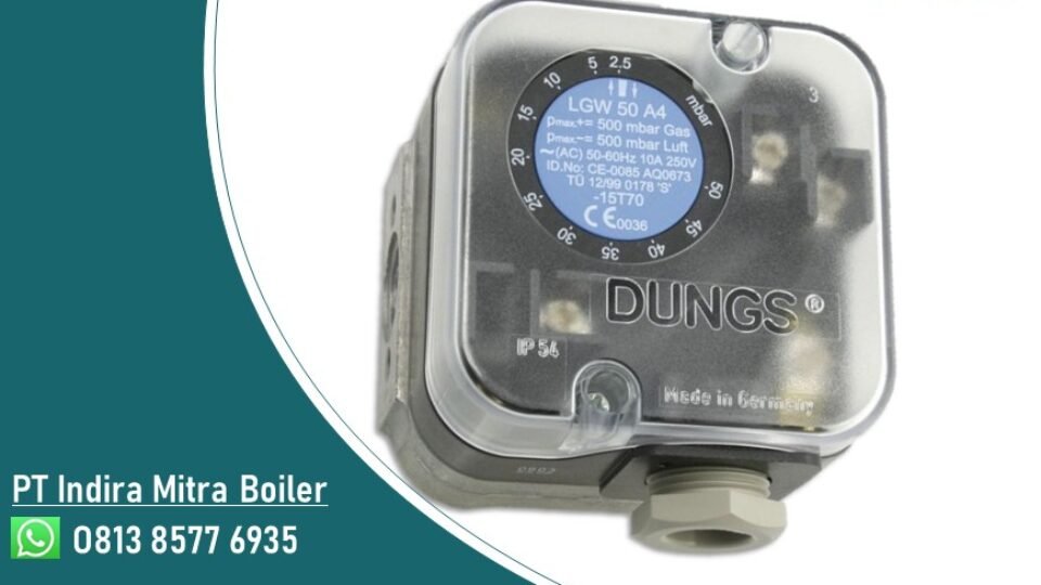 DUNGS LGW 50 A4 adalah sebuah pressure switch (saklar tekanan) buatan perusahaan Jerman DUNGS, yang dirancang untuk mengontrol dan memonitor tekanan gas atau udara dalam sistem pembakaran (burner systems) pada instalasi gas industri dan komersial.