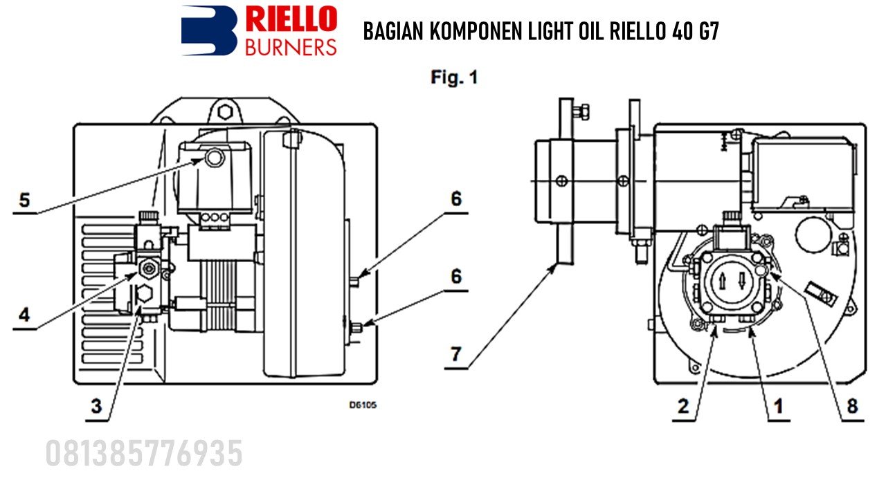 Burner Riello 40 G7 adalah pembakar minyak ringan monoblok otomatis sepenuhnya, dengan pengoperasian satu tahap yang dilengkapi dengan: