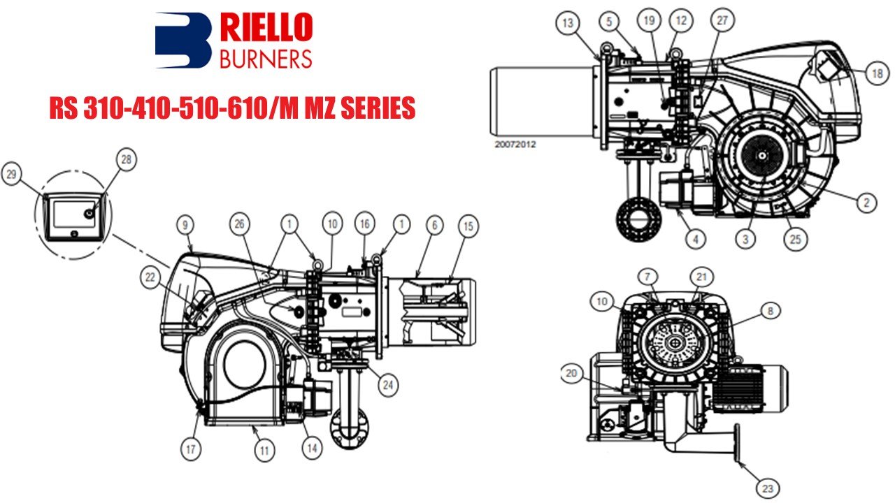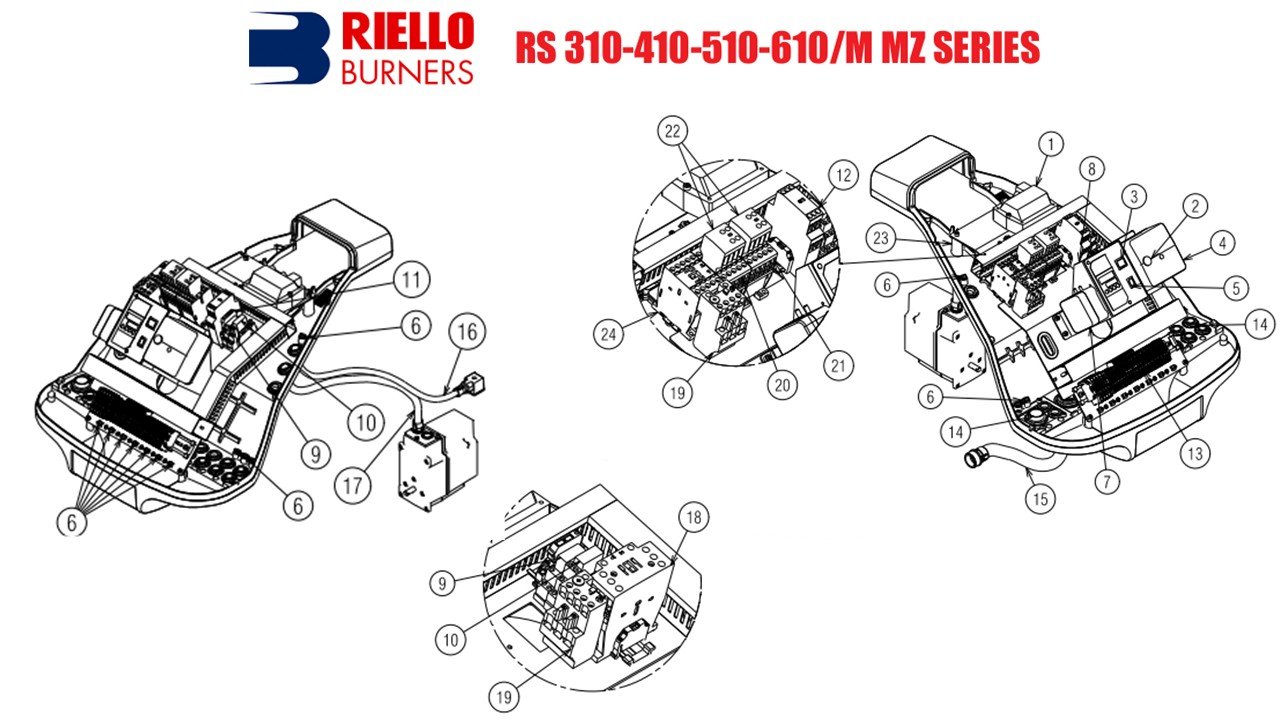 Seri Burner Riello RS 410/M MZ mencakup rentang kapasitas dari 800 Kw hingga 4900 kW, dan telah dirancang untuk digunakan dalam boiler air panas suhu rendah atau Tinggi, pemanas matrial rotary drayer, maupun boiler minyak thermal . Pengoperasian menggunakan bahan bakar natural gas dan dapat berupa “progresif dua tahap” atau, sebagai alternatif, “modulasi” dengan pemasangan regulator logika PID atau dengan sinyal eksternal 4-20 mA/0-10 V.